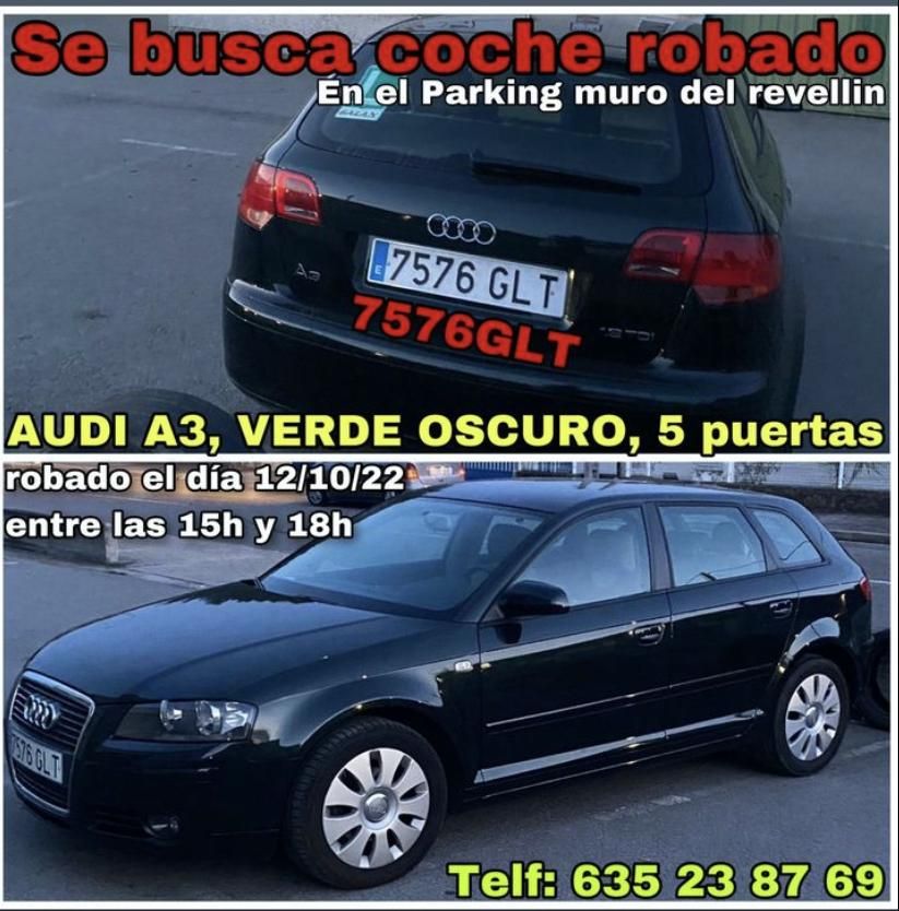 El dueño ya ha denunciado el robo en la Policía Nacional y ha empezado a difundir el suceso a través de redes sociales con el objetivo de intentar encontrar el coche con matrícula 7576GLT. Pide que se pongan en contacto con él para cualquier información que puedan tener en el 635238769.