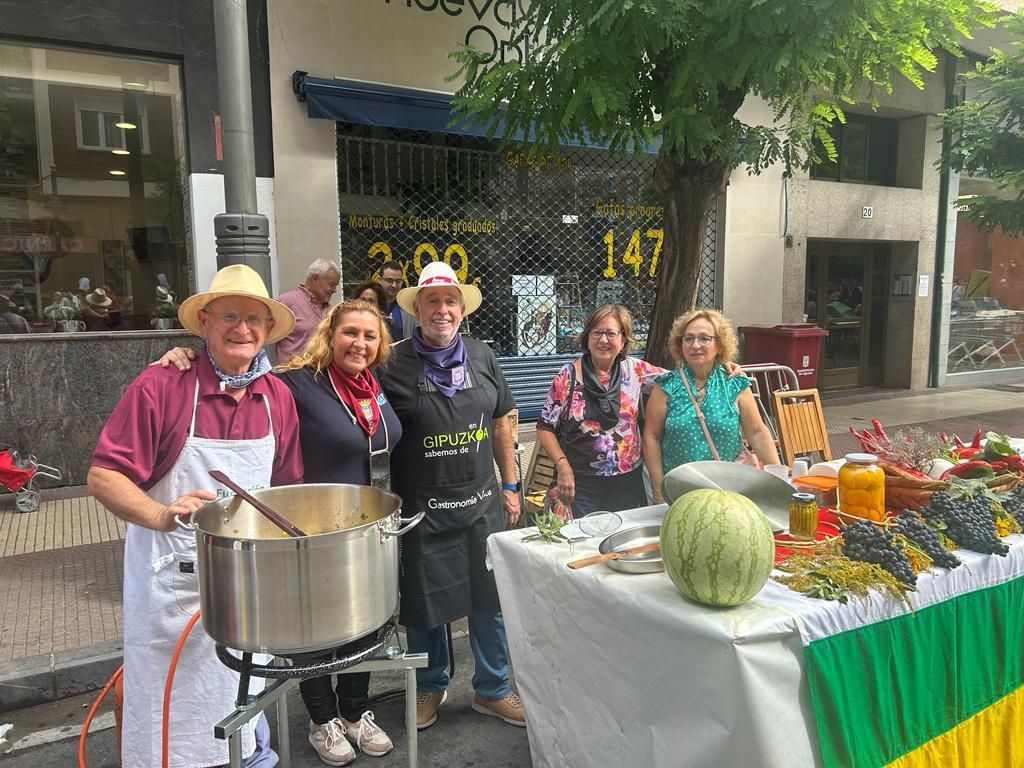 Desde hace “siete u ocho años”, Jesús se presenta al concurso de calderetas. Amigos y familia, todos juntos se sentarán en una mesa para degustar su caldereta, para una veintena de personas. ¿El secreto?: “Cuantas más cosas echas, a más cosas sabe y mucho cariño”, asegura. En concreto, su receta incluye costilla y caracoles. “Por una cosa o por otra lo importante es disfrutar juntos”, cuenta desde detrás de un mostrador adornado con uvas, pimientos y demás productos riojanos, elaboración de las mujeres de la cuadrilla.