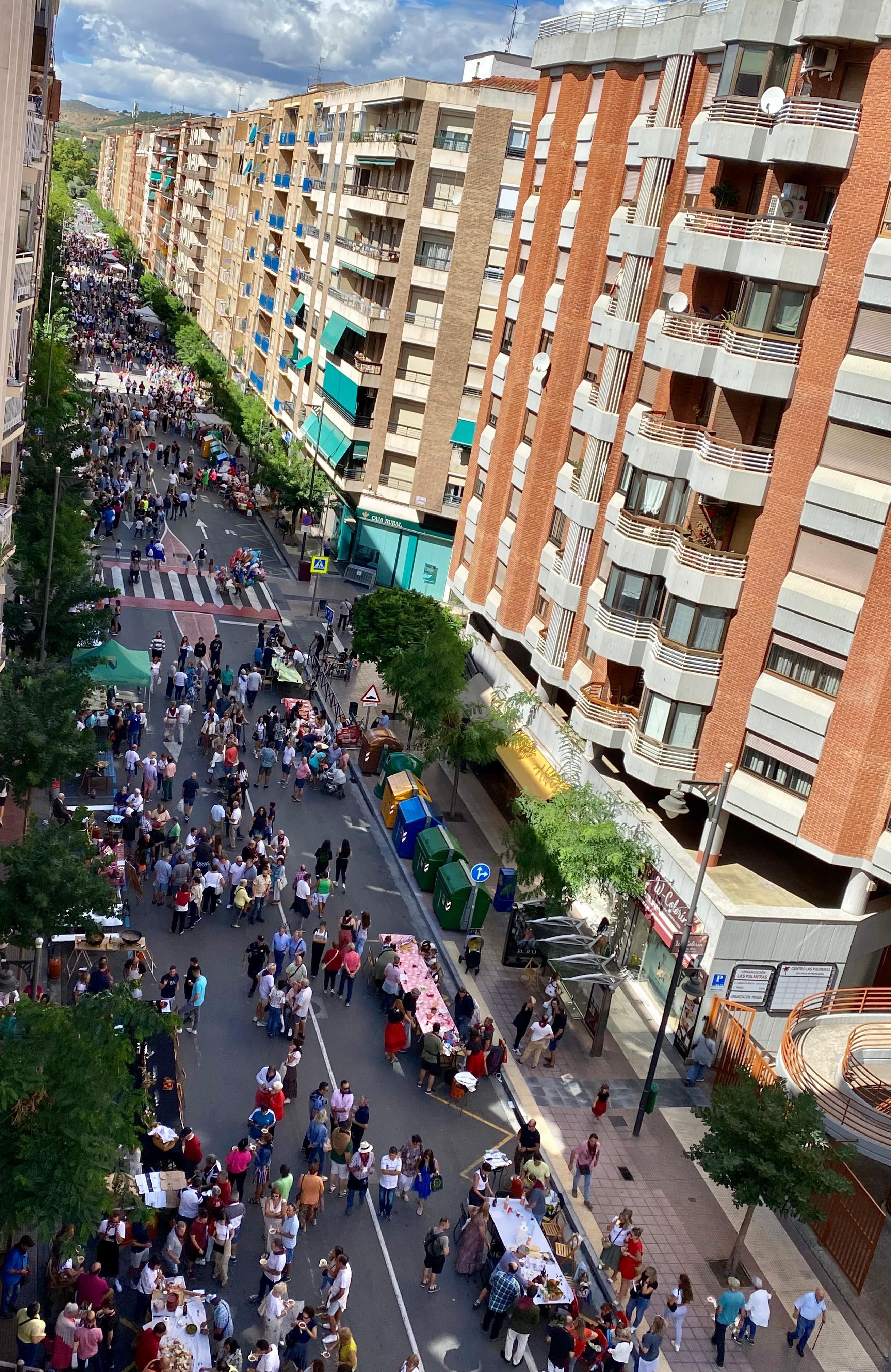 La mesa de Vanesa llama la atención por su decoración. En ella conviven productos riojanos con clásicos de la historia del arte. Toda persona que pasa saca una foto. “Nos hace ilusión ponerlo bonito, darle un poco de color”, cuenta quien en anteriores ocasiones ha ganado el concurso. “Hemos querido unir gastronomía y cultura”. A cargo de dos calderetas, “la preparamos con toda la ilusión para todos los amigos que nos acomapañan”.