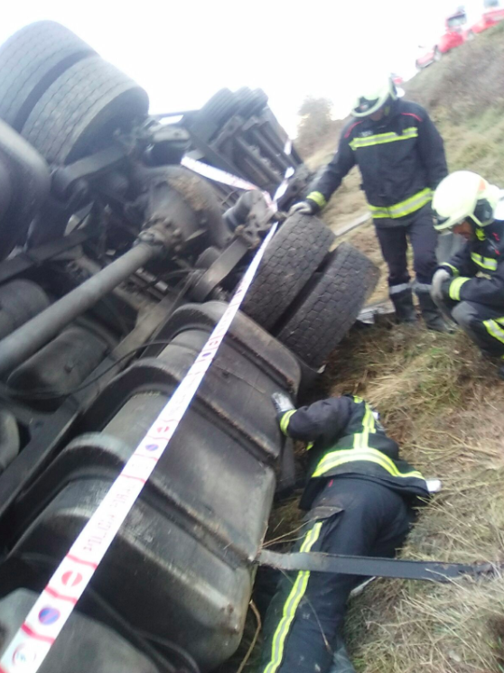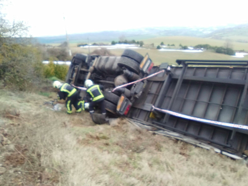 Un camión cargado con pienso se ha salido de la vía este viernes en la Na 7210 a la altura Meano (Navarra). Se ha producido una fuga de combustible del depósito cel camión que ha sido sellada por los Bomberos de Navarra. El conductor ha salido ileso.