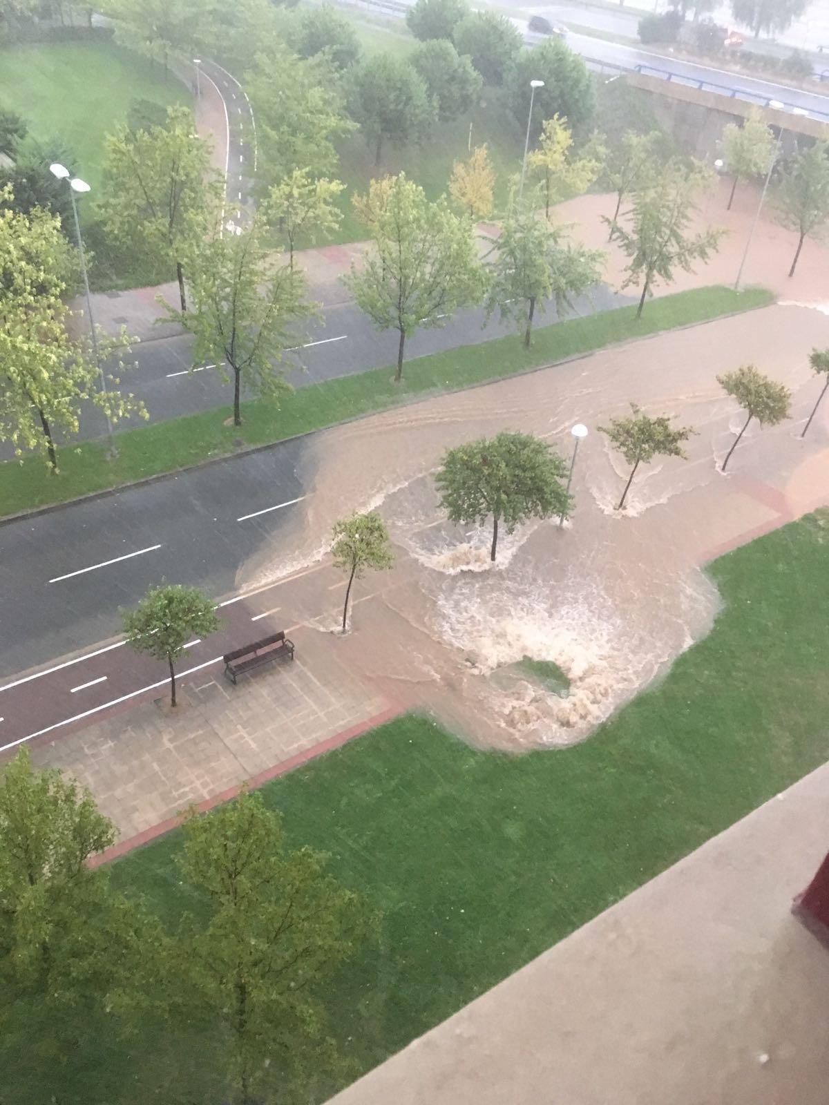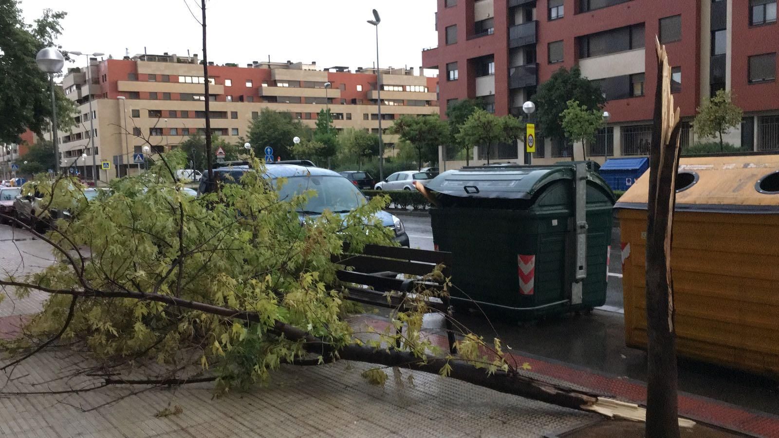 La tormenta ha dejado, de momento, casi 30 litros en media hora y ha provocado incidentes en la ciudad, con varios árboles caídos en la calzada entre otras calles, en Duques de Nájera y Chile. También se han registrado afecciones en el tránsito por AP68 y LO20 con zonas inundadas.