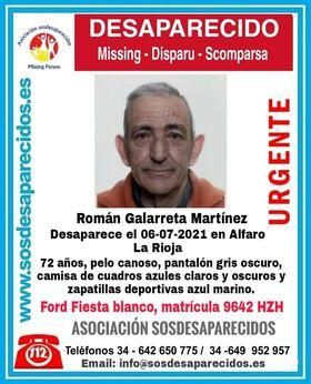 Tanto la Guardia Civil como la Policía Foral de Navarra y la Local de Alfaro buscan a Galarreta, de 72 años, que conduce un Ford Fiesta blanco, con matrícula 9642 HZH.