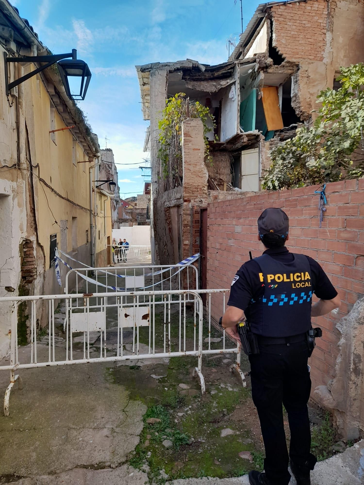 La calle Olivo entre los números 5 y 7 permanece cortada al tráfico y a los peatones porque hay riesgo de derrumbe. Hasta la zona se han trasladado la alcaldesa de Calahorra, Mónica Arceiz, el concejal de Urbanismo, Antonio Mazo, técnicos municipales de Urbanismo, agentes de la Policía Local y bomberos.