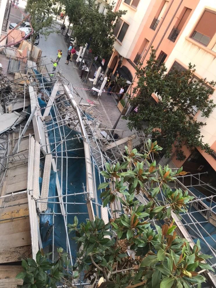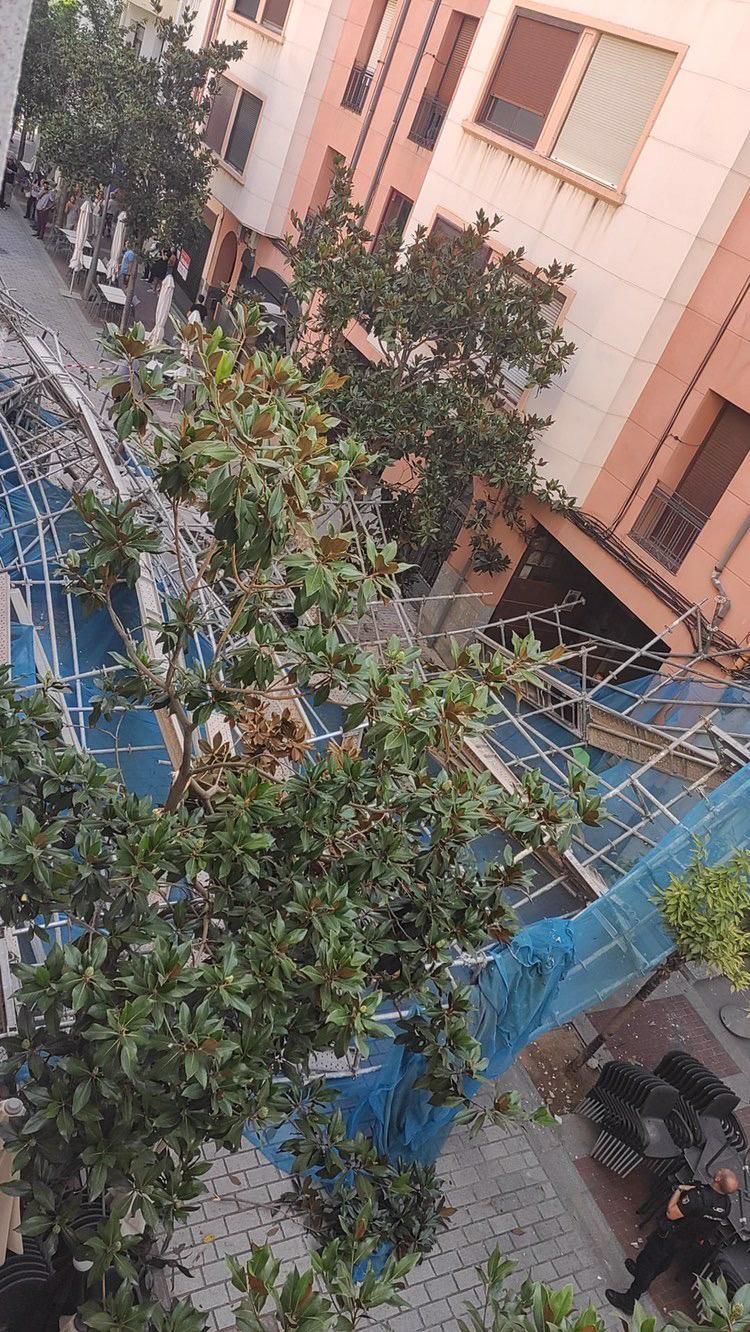 “Llevamos días que no sé por qué no pasaba nada”, ha asegurado relatando cómo los trabajadores han alertado al encargado de que se bajara, porque se veía que se movía la fachada. Pasados unos instantes, ha caído una gran losa, antaño balcón, y ha arrastrado con ella el andamio, que ha atravesado la calle hasta quedar tirado en el suelo y chocando contra el local de enfrente.