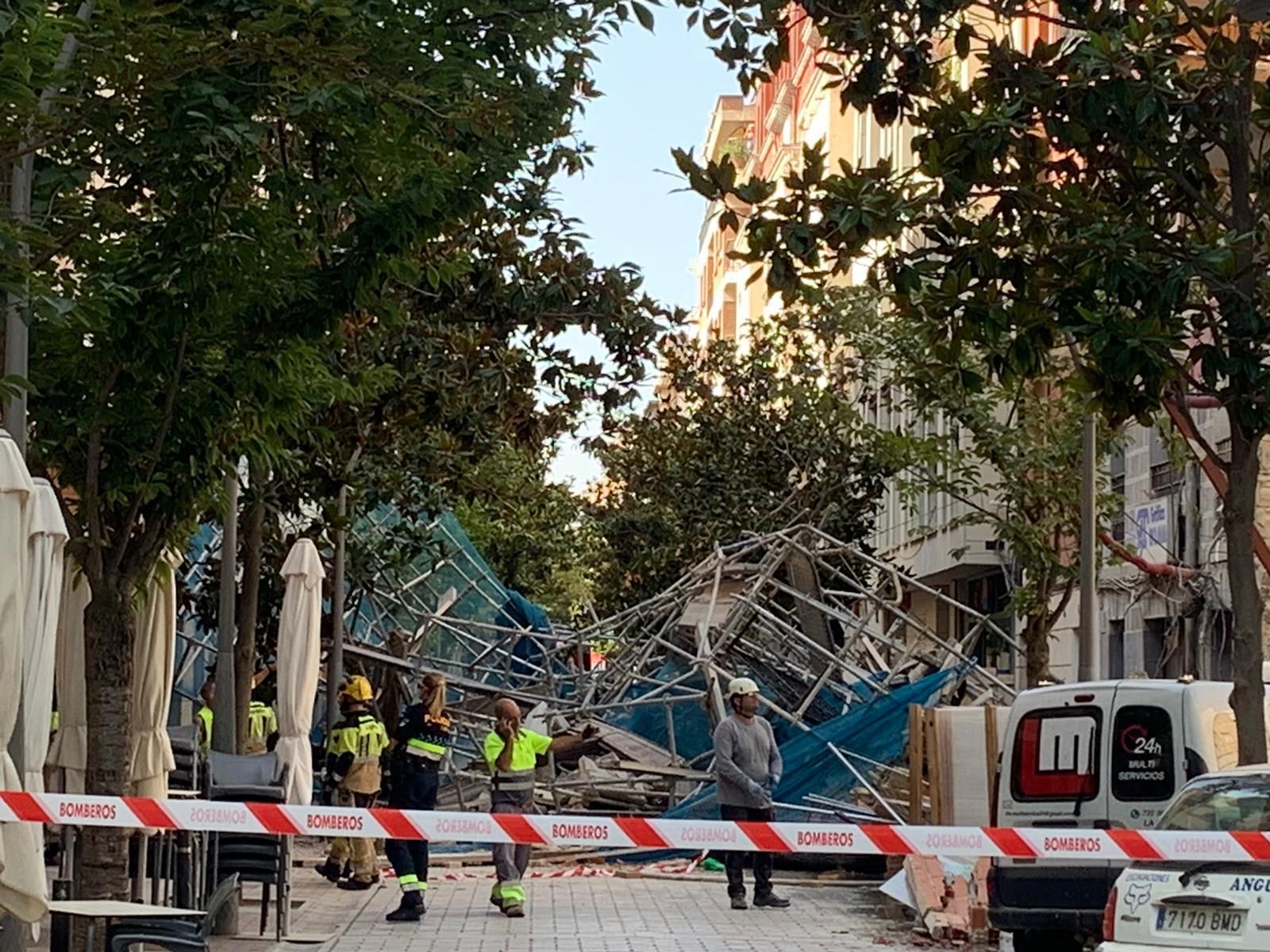 Se derrumba un andamio en la calle María Teresa Gil de Gárate: dos heridos