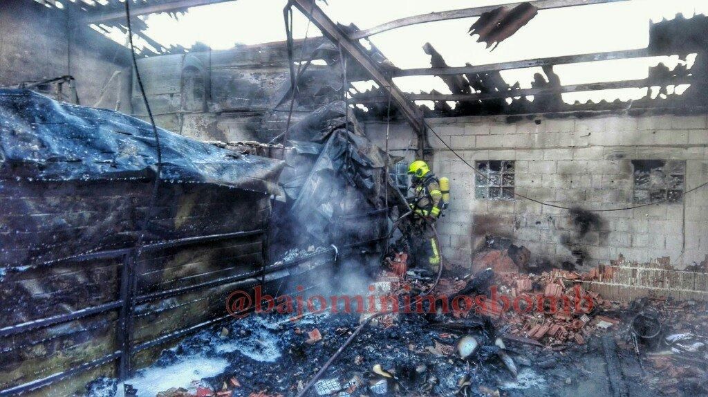 Los Bomberos de Logroño han sofocado esta madrugada el incendio de un pabellón de venta de madera en Lardero.