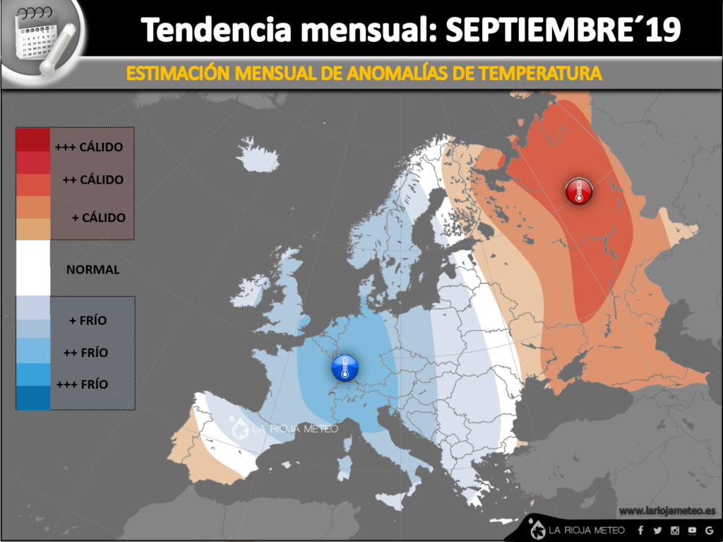 ANOMALÍAS TÉRMICAS PREVISTAS EN EUROPA EN SEPTIEMBRE´19