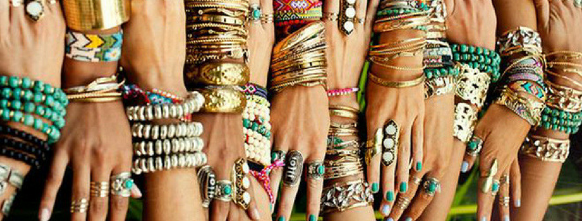 Accesorios: las pulseras más populares son las delgadas plateadas y doradas y entrelazadas. Para darle un toque creativo, también podrías usar pulseras de madera. Además, puedes combinarlas con tobilleras y brazaletes. Los pendientes boho chic suelen ser largos y confeccionados con metal y piedras naturales, aunque también pueden incluir plumas y cuero. Los sombreros son un esencial de este tipo de outfit. Es importante que todas la piezas luzcan un estilo envejecido.