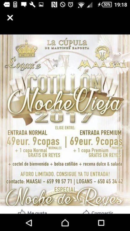Otros bares que han decidido hacer frente común son Logan's, La Cúpula y Maasai, que ofrecen un cotillón con cóctel de bienvenida, bolsa de cotillón y recena por 49 o 69 euros.