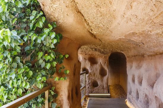 La visita también permite conocer la espectacular Cueva de los Cien Pilares, recientemente restaurada para su apertura al público. Un impresionante conjunto rupestre cuyo origen se remonta a la Edad Media y que, probablemente, albergó el Monasterio de San Miguel. A buen seguro los más pequeños de la casa disfrutarán perdiéndose entre sus galerías.