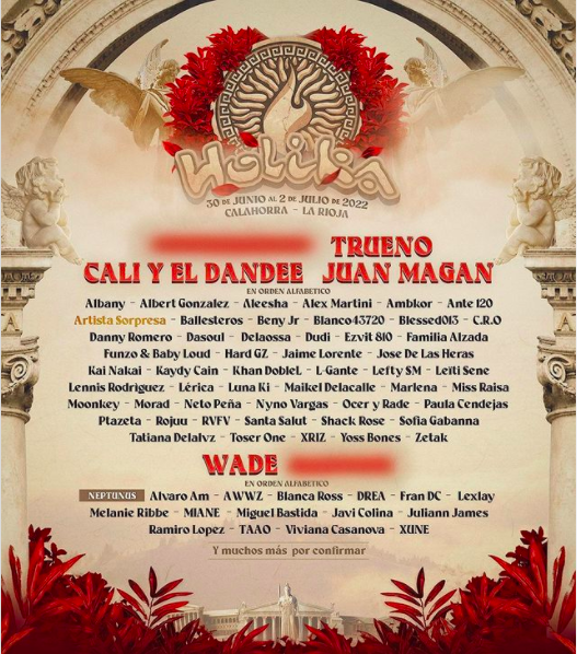 Entre ellos, destacan nombres como Trueno, Cali y el Dandee y Juan Magán. Serán tres días inolvidables, llenos de música, alegría y mucha fiesta en los que también actuarán Wade, Nyno Vargas, RVFV, O Miss Raisa.