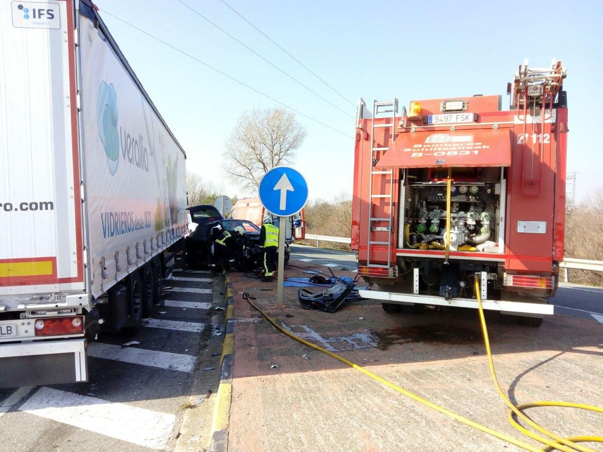 En la atención al siniestro han participado los Bomberos de Navarra y patrullas de la Policía Foral de Tafalla y Tudela.