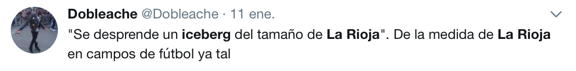 Los comentarios no se han hecho esperar en las redes sociales con esta comparación de tamaños entre este iceberg de 5.000 metros cuadrados y La Rioja. Los usuarios han estado comentando que nuestra comunidad se convierta en una nueva unidad de medida.