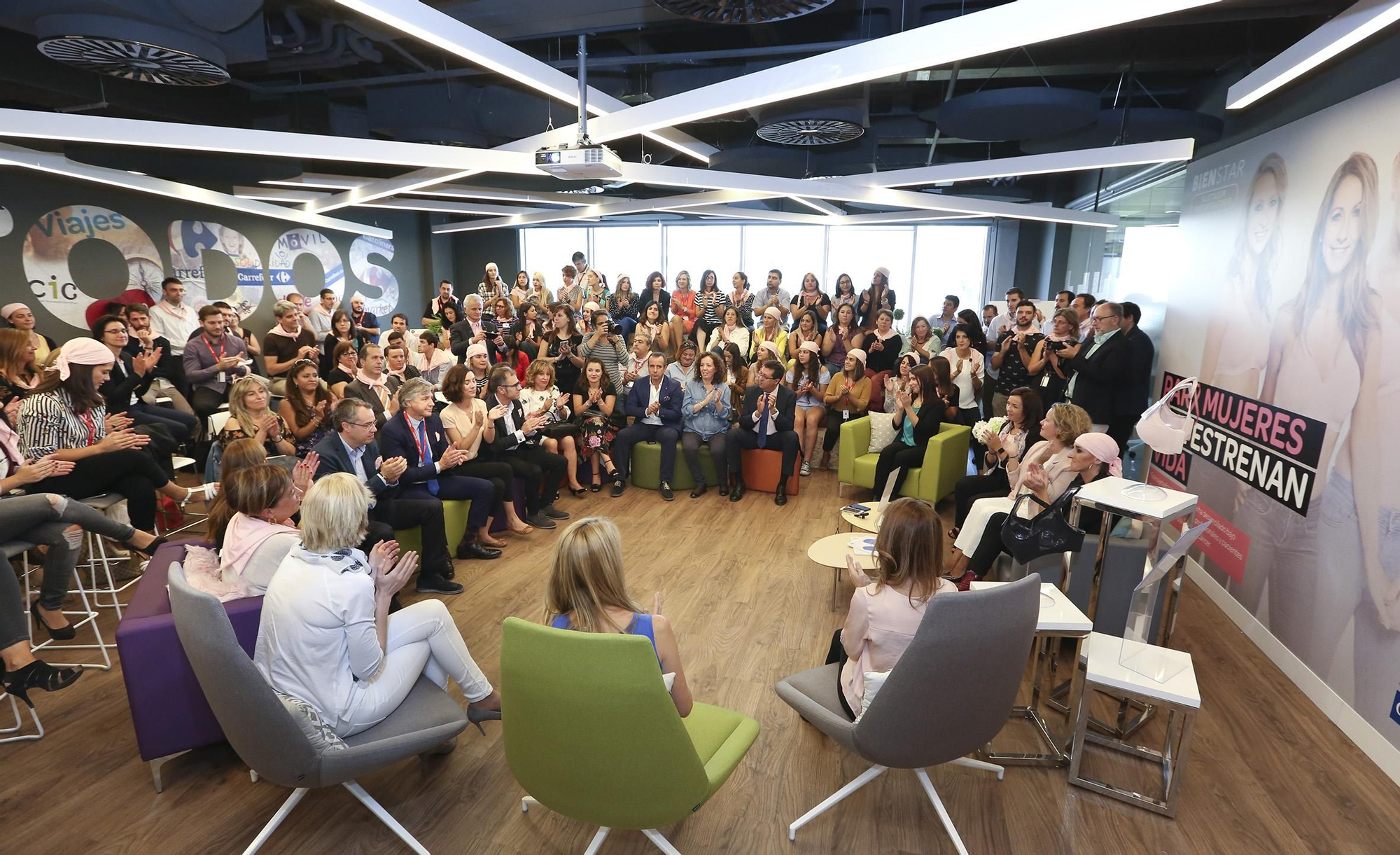 La presentación de esta prenda tuvo lugar la semana pasada en el marco del Día Mundial del Cáncer de Mama, contó con las intervenciones de Beatriz González Torrecilla, directora de Textil de Carrefour, Isabel Martínez-Noriega, directora de Relaciones Externas de la AECC, María Narváez, fisioterapeuta de la AECC y María Cid, directora de la Fundación Solidaridad Carrefour.