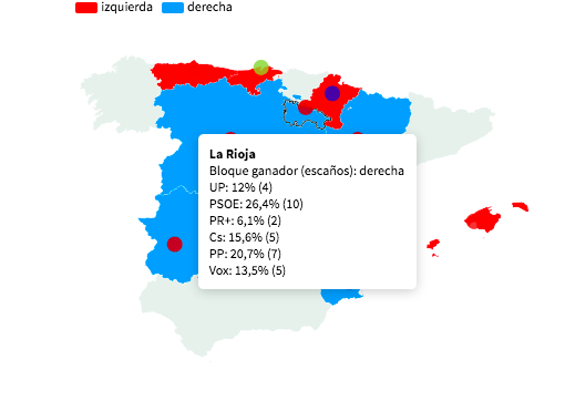 De este modo, aunque el PSOE sería el partido con más escaños, necesitaría aliarse con otros partidos para obtener la presidencia del Gobierno de La Rioja. Así, por ejemplo, sí podría obtener mayoría (17 diputados) si se uniera a Cs y a PR+ o a Unidos Podemos y Ciudadanos, pero no sería suficiente con una alianza entre PSOE, PR+ y Unidos Podemos.