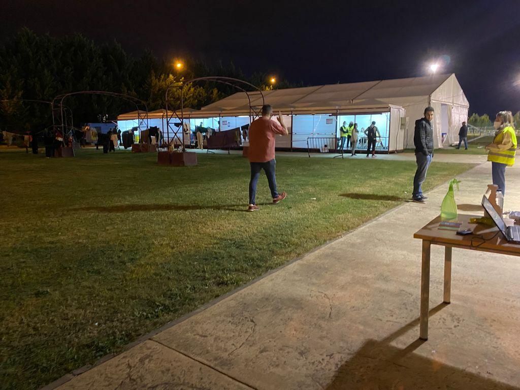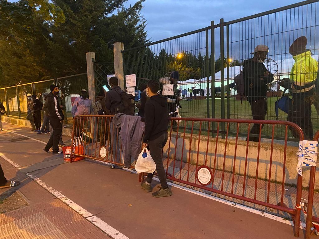 Por lo demás, la tranquilidad reina en el dispositivo de atención a trabajadores agrarios desplazados que se ha instalado este año en el polideportivo Titín III. Son las 20.00 horas y el dispositivo funciona como un perfecto engranaje: control de temperatura, registro de entrada, atención social, pegatina, test de antígenos si es el primer día, cena y cama.