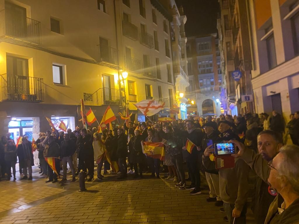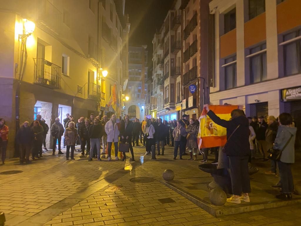 Unas 200 personas se han concentrado este martes ante la sede del PSOE de La Rioja en la Plaza Martínez Zaporta. Personas que con proclamas como “Sánchez atiende, España no se vende, No amnistía, no en mi nombre, Sánchez hijo de puta o Felipe masón, defiende la nación' e insultos han mostrado su rechazo al proyecto de Ley de Amnistía que prevé el Gobierno central.