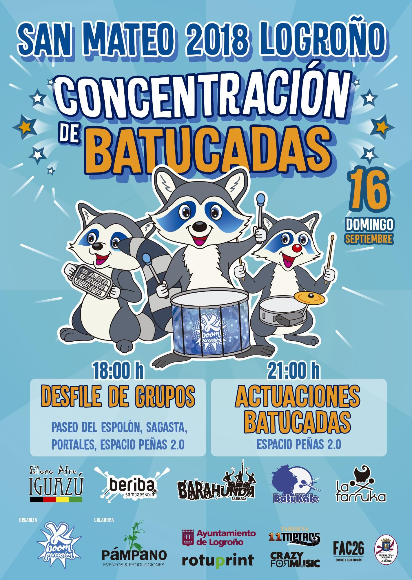 Además de todos los actos organizados por el Ayuntamiento de Logroño, en estas fiestas de San Mateo también habrá una concentración de batucadas en la que participarán unos 80 músicos. Concentración que está organizada por la asociación musical, K-Boom Percusión, y que tendrá lugar el domingo 16 de septiembre.