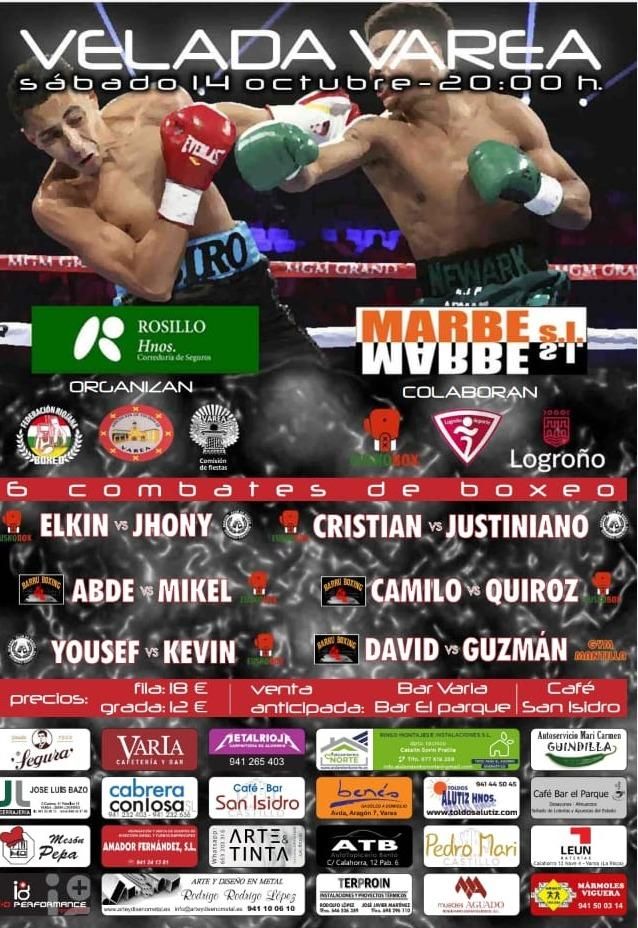 El boxeo llenará el polideportivo de Varea a partir de las 20:00 del próximo sábado 14 de octubre con motivo de las populares fiestas del Pilar. El cartel del evento que supervisa la Federación Riojana de Boxeo anuncia seis emocionantes cruces con participación de boxeadores riojanos midiéndose a alaveses y burgaleses.