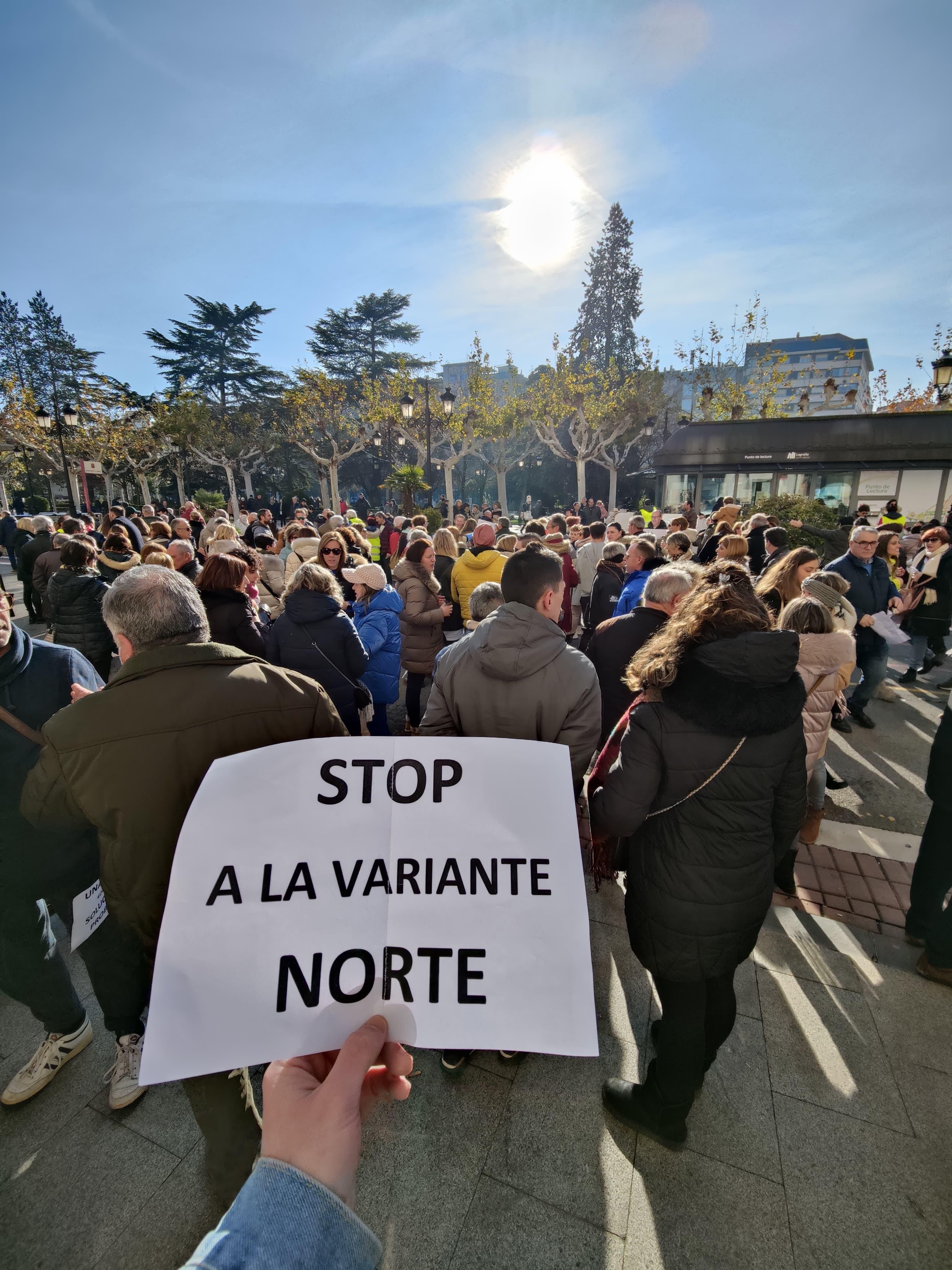Más de 400 vecinos de Rincón de Soto se han manifestado desde la plaza del Ayuntamiento de Logroño hasta la Delegación de Gobierno en La Rioja, situada en el Paseo del Espolón de la capital, para mostrarse en contra del proyecto de la variante Norte del ferrocarril.