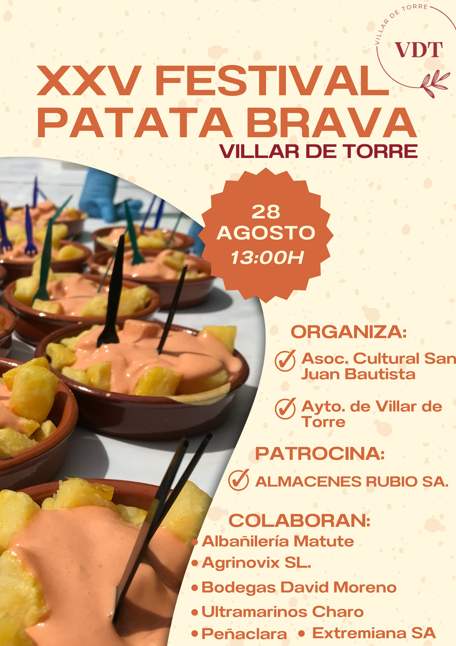 Villar de Torre, celebrará, como preludio a sus fiestas de Acción de Gracias, el XXV Festival de la Patata Brava, convertido en uno de los más atractivos reclamos culinarios del calendario festivo de nuestra tierra.