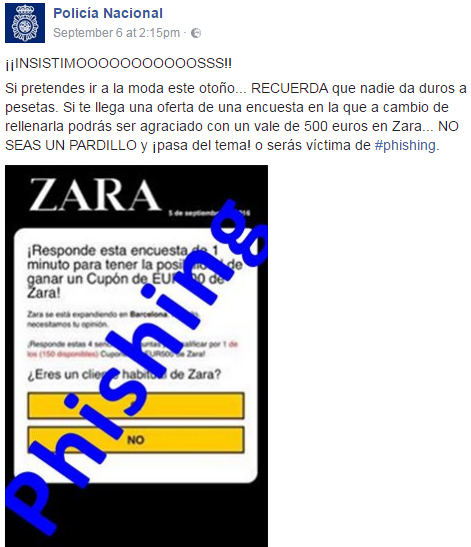 Cada vez son más frecuentes las denuncias por este tipo de prácticas delictivas. Una de las más recurrentes, que según alerta la Policía Nacional, está circulando de nuevo, es la que utiliza a Zara como reclamo.