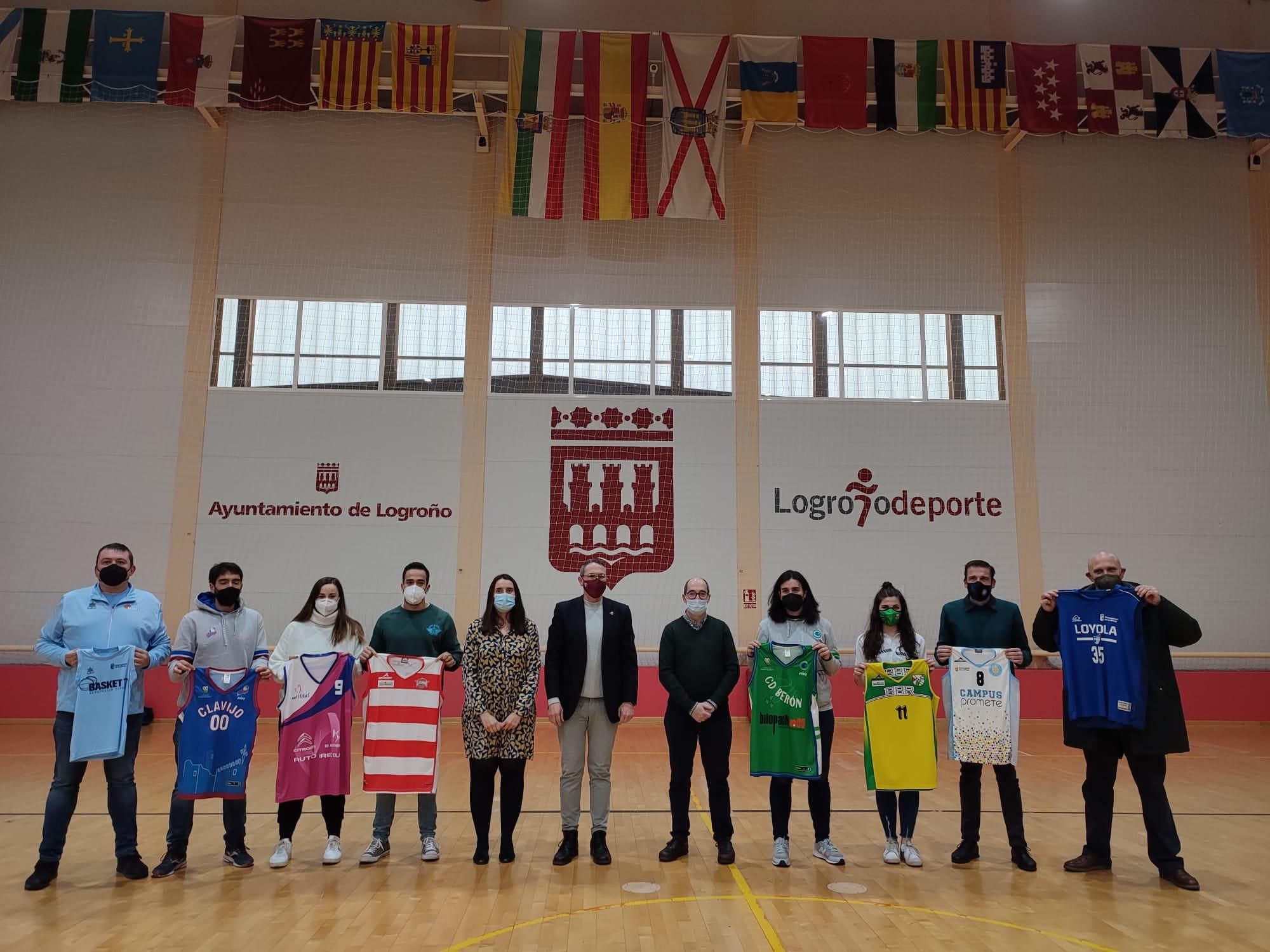 Este martes se ha presentado en Lobete el 7º Torneo Canteras de Baloncesto que se celebrará del 28 al 30 de diciembre en el Centro Deportivo Municipal Lobete. En el acto han estado el Concejal de Deportes, Rubén Antoñanzas, el vicepresidente de la Federación Riojana de Baloncesto, Eduardo Palacios y, la responsable federativa de eventos, Marta Elguea. Además, junto a ellos, representantes de algunos clubes participantes han posado en la foto de familia con las camisetas de sus equipos. San Ignacio, AD Loyola, CB Clavijo, CD Berón, Baby Basket Rioja, Logrobasket Club, Rey Pastor, CD Maristas, Basket 77, CD Sotillo y CD Promete serán los participantes.