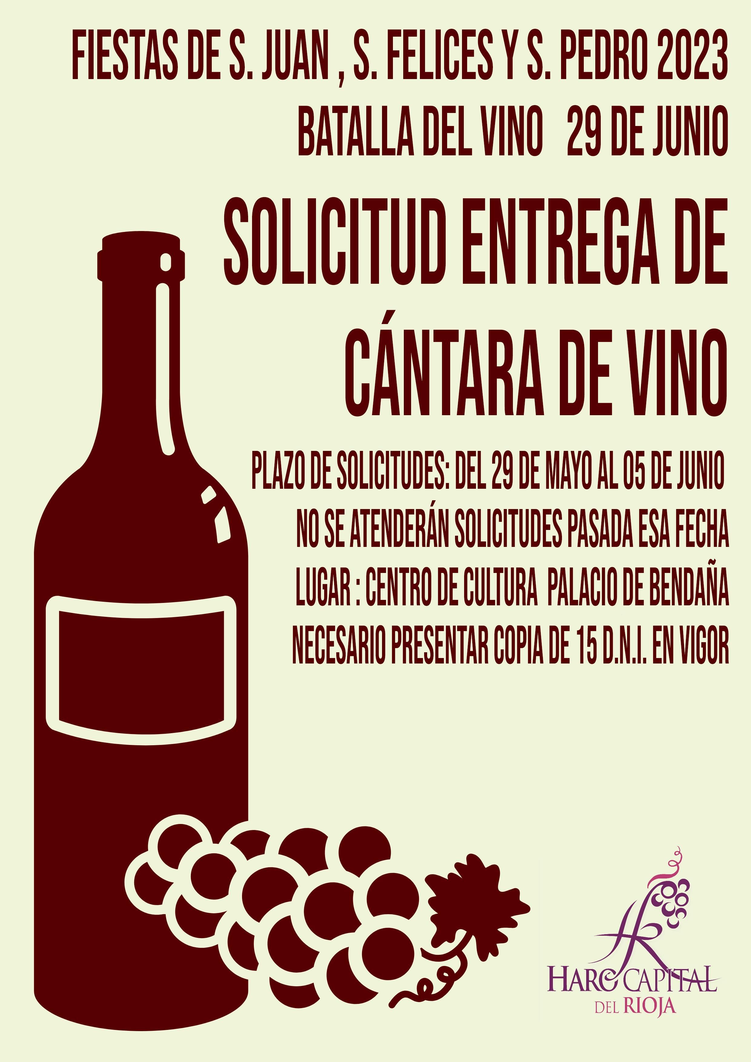 El plazo de presentación de solicitudes para acceder a las cántaras de vino para la Batalla del Vino de este año está abierto hasta la jornada del lunes cinco de junio.