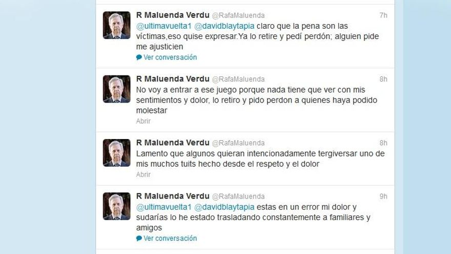 Las reacciones no tardaron en producirse y, ante la lluvia de críticas, el diputado popular ha acabado borrando su tuit. “Lamento que algunos quieran intencionadamente tergiversar uno de mis muchos tuits hecho desde el respeto y el dolor”, ha afirmado esta mañana tras la avalancha de protestas. “Alguien pide que me ajusticien”, se ha quejado.