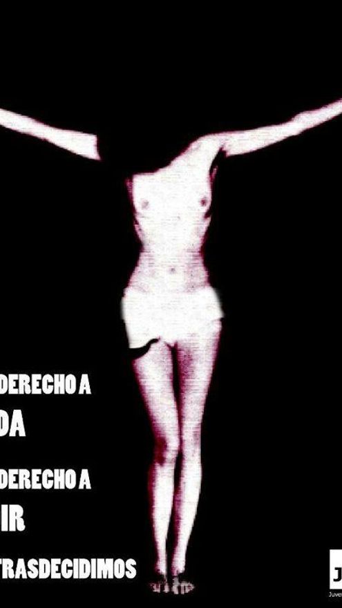 Mensaje al Gobierno pasando por la Iglesia. Juventudes Socialistas de España (JSE) se ha adherido a la plataforma #nosotrasdecidimos contra los planes del Gobierno de restringir la ley del aborto. Su aportación a la campaña pasa por un cartel en el que se muestra a una mujer simulando una crucifixión con el lema “Tienes derecho a tu vida, tienes derecho a decidir”.