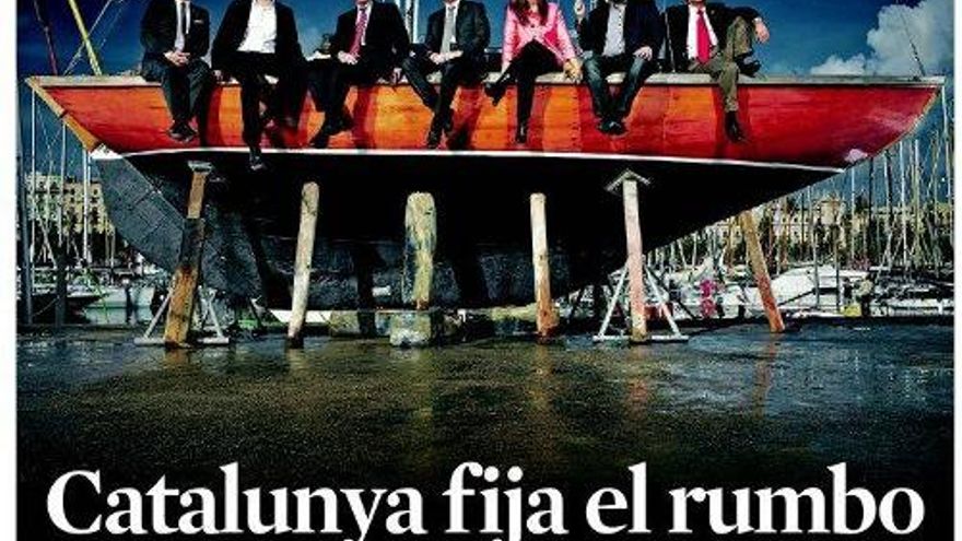La más graciosa, sin duda, es la foto de La Vanguardia. Fotografiados en un barco varado o en reparación, están ahí esperando a que alguien venga a arreglar la nave que ellos han embarrancado. Esa es la idea. Ahora bien, si confían en que sean los votantes los que solucionen los problemas que ellos han creado...