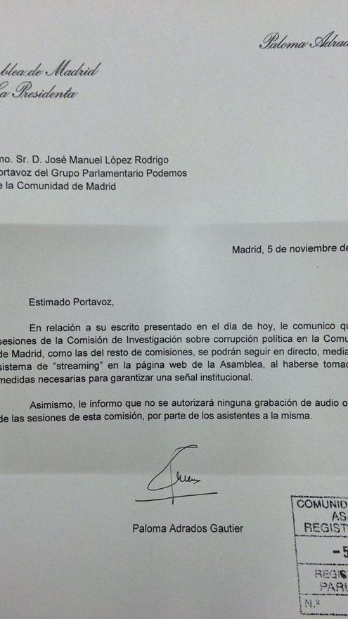 La Asamblea de Madrid retransmitirá en directo por Internet todas las comisiones, pese a que hasta ahora había alegado motivos técnicos para no hacerlo. El grupo de Podemos solicitó en la Junta de Portavoces del pasado martes que la segunda sesión de la comisión que investiga la corrupción en la Comunidad de Madrid se pudiera seguir en directo. La petición fue rechazada y el diputado Hugo Martínez Abarca lo hizo con sus propios medios, con permiso de la presidenta de la Comisión, y a través de la plataforma Bambuser.