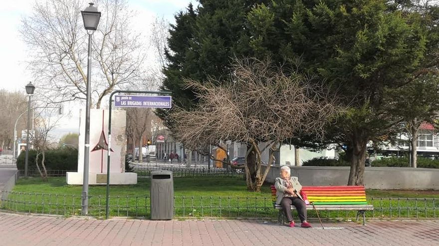 Decenas de bancos de diferentes barrios de Madrid han amanecido hoy pintados con los colores de la bandera LGTBI. Se trata de una acción de activistas y colectivos en protesta por la decisión del Ayuntamiento de Almeida de retirar los bancos decorados con esta misma bandera en el Paseo Federico García Lorca del distrito de Vallecas.