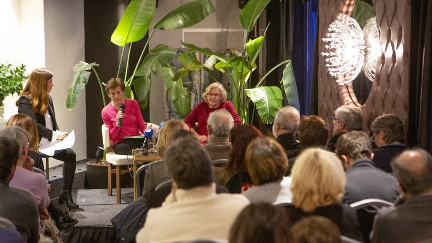 En una sala del hotel Vincci de Callao, estrecha y abarrotada de cámaras, Carmena se ha sentado alrededor de una mesa con la catedrática de Ética Adela Cortina como invitada y la desigualdad como tema nuclear de la conversación. El punto de partida del debate han sido precisamente unas declaraciones del actual alcalde de Madrid que vinculó la falta de equidad con las sociedades desarrolladas.