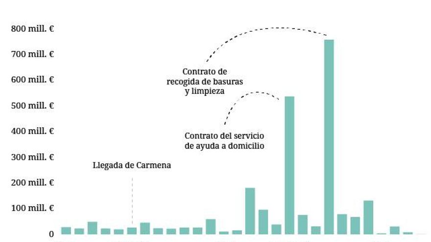 Solo los macrocontratos de recogida de basuras y ayuda a domicilio, adjudicados en junio y septiembre de 2016, ya suponen la mitad del presupuesto municipal en licitaciones de los dos primeros años de legislatura.