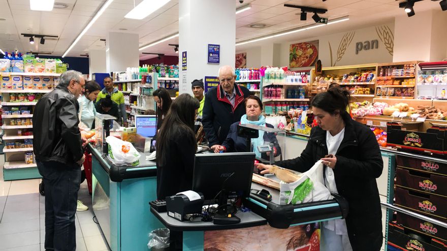 Podría sonar a chanza, pero basta con cruzar la vista de acera para ver que no hay exageración en sus palabras. Mientras que la hostelería se resiente, Alcampo y Froiz, los dos supermercados de la zona, están a rebosar. Soledad sale con un carrito lleno de enseres: “Habitualmente bajo a desayunar a la calle, pero hoy me lo llevo a casa”, nos comenta.