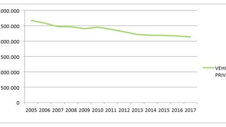 El tráfico de coches se evalúa con un indicador que mide la suma del promedio de desplazamientos en varios puntos de la ciudad. Se llama IMD y tiene en cuenta el desplazamiento pero también la distancia, según fuentes del área de Medio Ambiente del Ayuntamiento. Ese indicador tenía un valor de 2.135 millones en 2017 frente a los 2.673 millones de 2015.