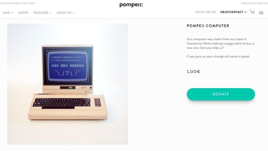 A finales de 2018, la exitosa empresa de zapatillas Pompeii abrió su primera tienda en el número 53 de la calle Fuencarral, donde los alquileres rondan los 110 euros el metro cuadrado. El viernes pasado, una chica a la que no conocen robó el portátil –un MacBook Air de Apple valorado en entre 1.400 y 1.600 euros– con el que gestionan las ventas. Este lunes, la marca pedía por redes a sus clientes donaciones de un euro para hacer frente a los gastos de un nuevo ordenador a cambio de “estampar su nombre” en él y “formar parte de la historia de Pompeii”.