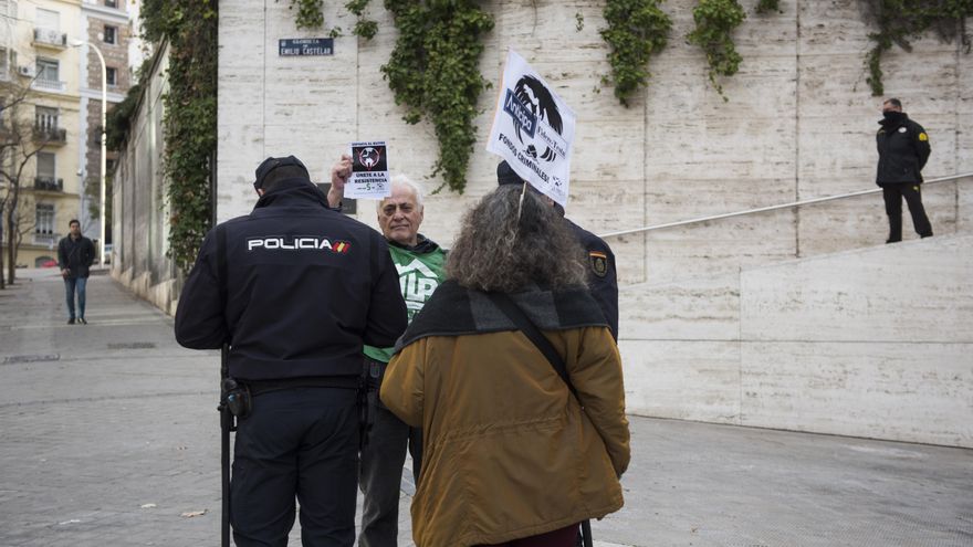 En ese momento, fue requerido por la policía para volver a unirse al grupo. “Yo tengo derecho a repartir esto en frente sin avisar a nadie”, explicaba Ignacio, de la PAH de Fuencarral, pero “ellos dicen que aquí si y aquí no”, lamentaba. Ante su negativa a abandonar ese tramo de la calle, por donde circulaban peatones con normalidad, “me han identificado por repartir propaganda” y “me han dicho que me sancionarán. Ya sabes, la ley mordaza. Habrá que recurrir”.