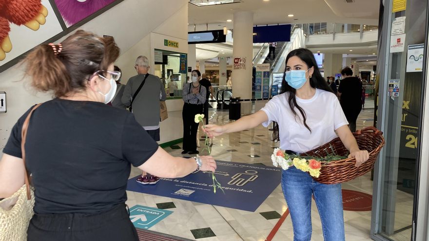 Claveles y un espectáculo de mimo para dar la bienvenida. Así ha abierto este lunes sus puertas el centro comercial de La Vaguada, en el Barrio del Pilar de Madrid, tras tres meses con el cerrojo echado. Antes de que la COVID-19 lo convirtiese en un foco de contagio, este mastodonte de hormigón, plomo y piedra natural que diseñó César Manrique era el núcleo de vida del norte de la capital con los jubilados merodeando sin rumbo, las familias y los grupos de amigos comiendo en la última planta. Hoy, al 40% de su capacidad, mascarillas y geles en cada esquina, esa estampa se ha vuelto a repetir.