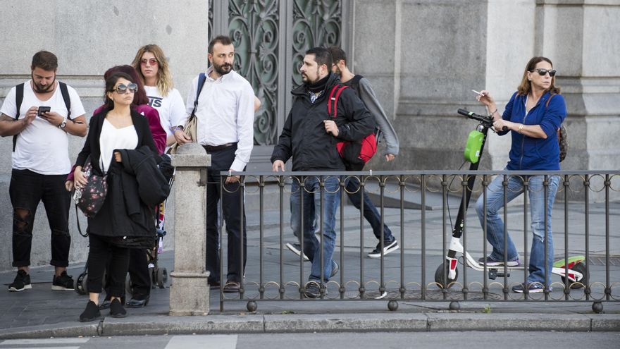 La medida más aplaudida entre los peatones es la que equipara los patinetes eléctricos a las bicicletas y prohíbe que circulen por las aceras: “Lo veo bien. Son molestos, van muy rápido y no dejan pasar por la calle”, lamenta una vecina de Embajadores con la bolsa de la compra bajo el brazo. De edad avanzada, camina a paso lento de vuelta a casa y siente que la norma le beneficia. Desde este miércoles, todos los vehículos de movilidad urbana −patinetes eléctricos, bicicletas y también 'segweys'− deben ir por la carretera. A las aceras solo podrán subir los que no tengan motor y no superen los 5 kilómetros por hora.