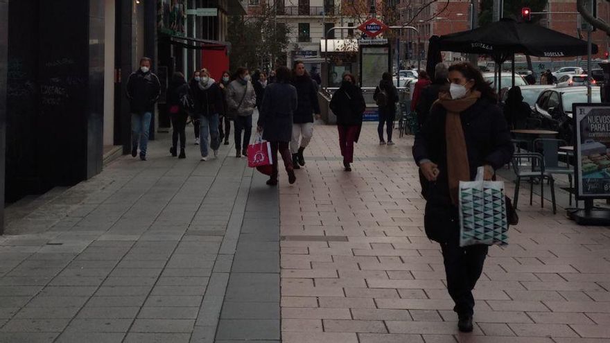 En la tienda de carcasas de teléfonos de la calle Orense la mañana del sábado día 2 es muy provechosa. Venden “muchísimo, muchísimo, muchísimo más”, insiste a mediodía Ana, una de las dependientas, cuando por fin tiene un descanso. “Hace un rato no se podía ni entrar”, asegura. En vísperas de Reyes y en una de las grandes calles comerciales de Madrid sería normal que hubiese mucha gente, si no fuese porque la vía está en una de las zonas confinadas por el aumento de incidencia de la Covid-19. Se trata de la zona básica de salud de General Moscardó, que, sin embargo, solo está cerrada en parte porque el gobierno de la Comunidad sí permitió el acceso a la supermanzana de Azca, donde está El Corte Inglés de Castellana. Este es uno de sus centros emblemáticos, que estos días funciona a pleno rendimiento y que también ocupa algunas plantas del edificio que se construyó en el solar del Windsor tras el incendio y que ahora es propiedad de los grandes almacenes.