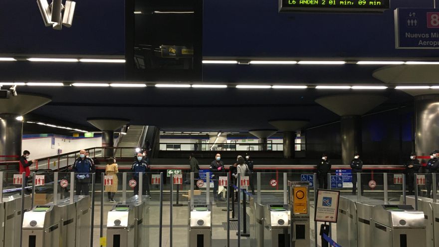 Ante la escasa actividad, Luis y su equipo recomiendan dirigirse a intercambiadores como el de Chamartín o el de Nuevos Ministerios. Sin embargo, al subir las escaleras del segundo se abre un escenario distinto al que cabría esperar. Las televisiones y los periodistas se arremolinan entre los veinte agentes de seguridad destinados en esta parada, pero apenas se les suman usuarios normales de Metro.