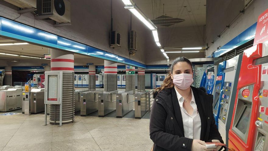 Los minutos pasan y el reparto es tan inusual que incluso los trabajadores de Metro permiten a personas sin abono atravesar los tornos para coger mascarillas y volver a salir. Así hace Ivanka, limpiadora de un banco a las afueras de Nuevos Ministerios. “Me ha avisado un compañero que acaba de venir en metro y he bajado porque mi empresa no me da mascarillas para hacer el trabajo”, reconoce mientras se lleva dos.