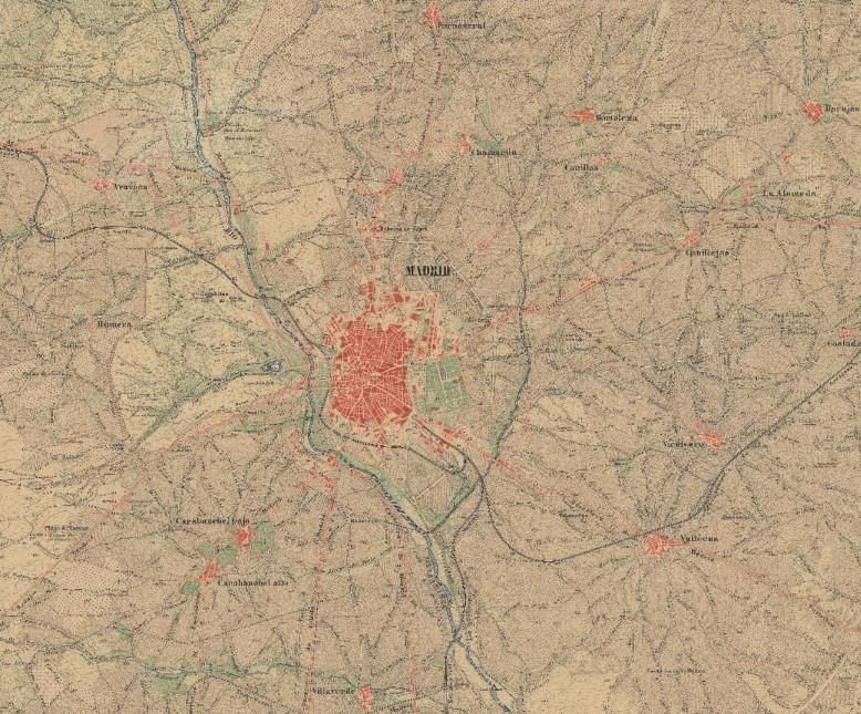 Madrid en 1875 era lo que hoy en día es el distrito Centro y estaba rodeado de otros municipios que se incorporaron a Madrid alrededor de 1950 -Villaverde, Chamartín de la Rosa, Carabanchel, Vallecas, etc.- con el objetivo de convertir la ciudad en el “Gran Madrid”. Por aquel entonces, todos ellos eran pequeños pueblos de carácter esencialmente agrícola.