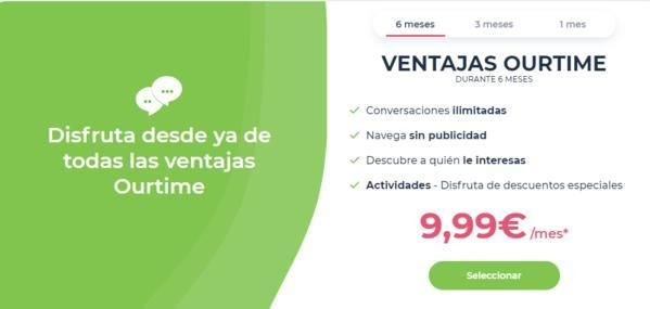Para desbloquear todas las funciones de Ourtime, tendrá que suscribirse al sitio en sus ofertar de 1, 3 o 6 meses: