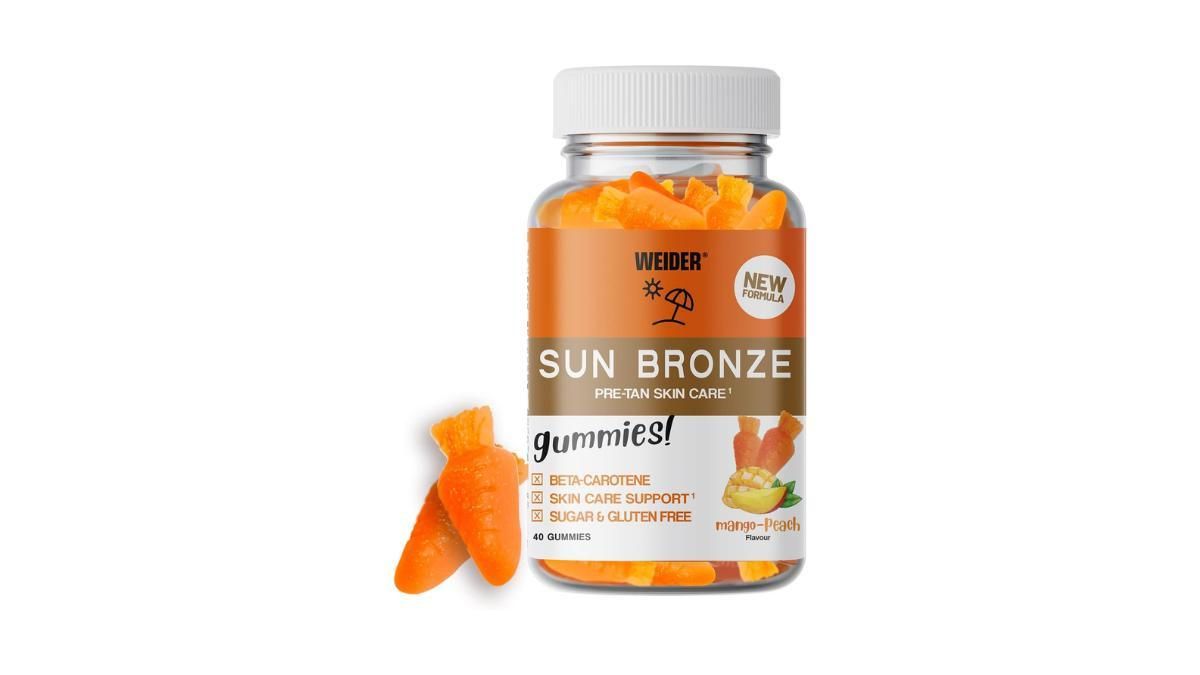 Weider Sun Bronze Gummies apuesta por un formato gominola con sabor mango-melocotón que busca aportar carotenoides y vitamina A para apoyar el cuidado solar de una forma sencilla. Es una propuesta más lúdica y accesible, pensada para quienes priorizan la comodidad o prefieren alternativas a las cápsulas.