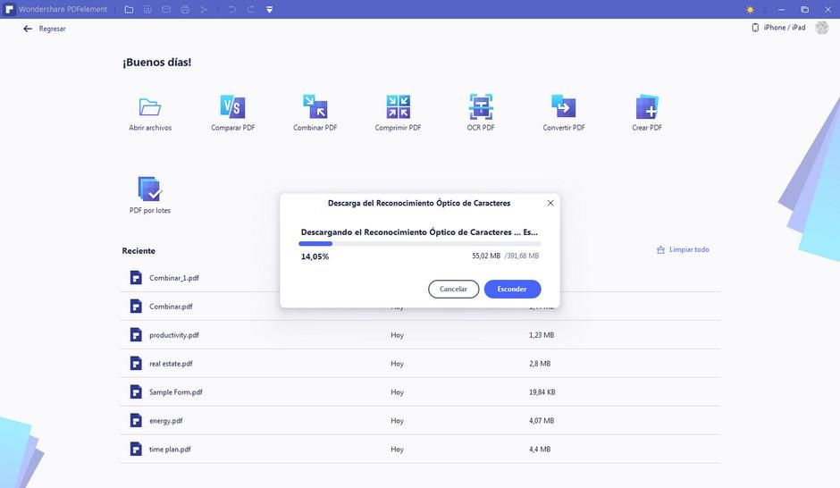 Wondershare PDFelement es uno de los software de lectura y edición de archivos PDF más completos que puedes encontrar, con el que podrás convertir pdf escaneado a word. Su capacidad para editar, convertir, crear, firmar, fusionar y dividir estos archivos, acompañado de su compatibilidad con tecnologías basadas en la nube y de transferencia de archivos vía WiFi hacen que destaque sobre el resto de la competencia. Otra de las opciones que incluye permite la conversión de fotografías tomadas con una cámara a formato PDF, abriendo así una infinidad de posibilidades que hacen de este programa a opción ideal para todo aquel que desee operar, con total libertad, sobre archivos PDF.