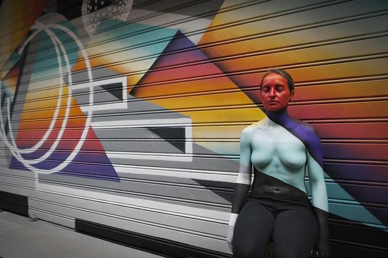 NYX - Cosmetics y la escuela de maquillaje Mery Makeup deslumbraron con sus creaciones de ‘bodypainting’ en la tercera edición de Pinta Malasaña, que se celebró el pasado día 15 en Malasaña. Su cometido era reinterpretar en 10 'lienzos humanos' otras tantas creaciones de participantes en la sección oficial del concurso del festival de arte urbano.