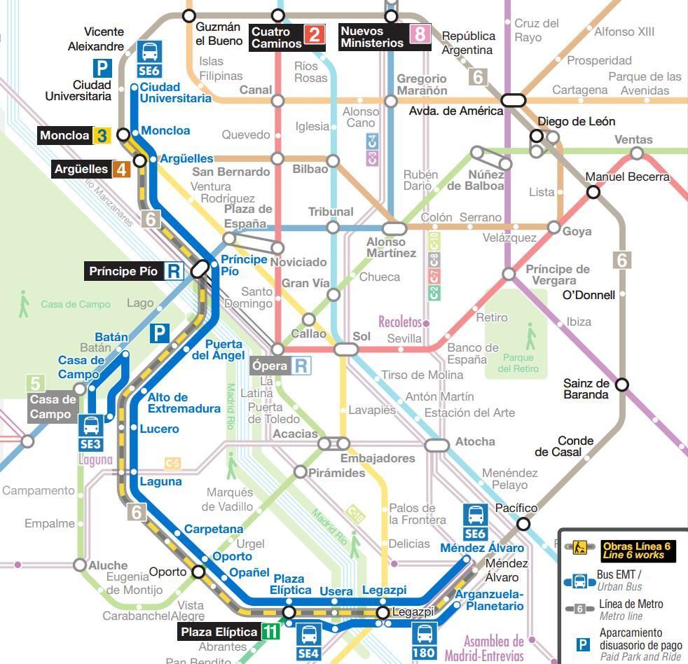 Este primer tramo afectado es el suroeste, que va desde las estaciones de Moncloa hasta Méndez Álvaro, abarcando nudos de comunicación como Príncipe Pío, Oporto, Plaza Elíptica o Legazpi.
